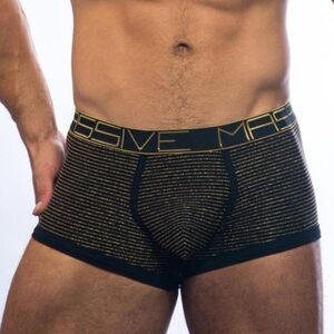Boxers made in a gorgeous festive stylish shiny metallic design that create a smoking hot underwear look. Underpants made of light and comfortable material that fits snugly and flexibly. Slimming waistband featuring the confident MASSIVE logo. Your packet falls lightly into Andrew Christian's anatomically designed pouch that doesn't cut in. The perfect underpants for a party!