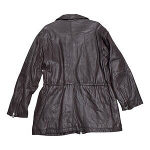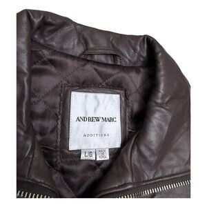 ANDREW MARC LEATHER Luxury Designer Brown Business Casual Coat Womens Large
