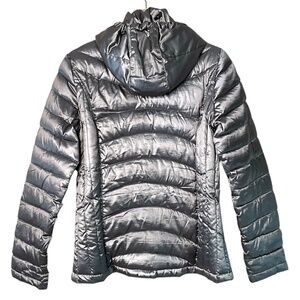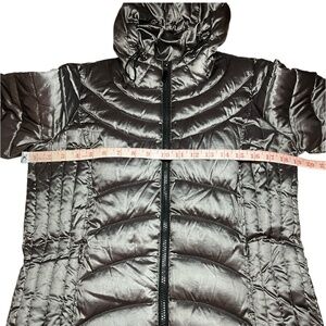 In very good pre owned condition. 90% Duck Down. Side hidden zipper pockets. Colour is a metallic taupe. Photos are important so please check all for condition, detail and measurements.