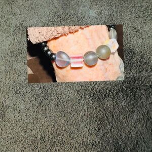 CUSTOM MADE Angel Aura MATTE round heart square shapes & Obsidian beads .925 lobster clasp bracelet with .925 security chain