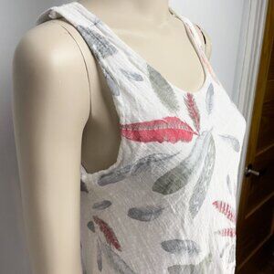 ANGELA MARA Cotton Viscose Feathers Print White Summer Midi Italy Dress sz Large