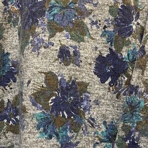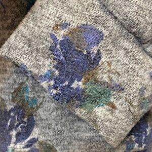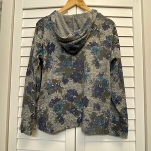 Nice hooded sweater. Background is grey with nice blue florals design. Inner tag has been cut out. Size tag says it is a large, please review measurements below to ensure a proper fit.