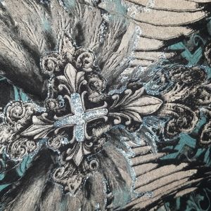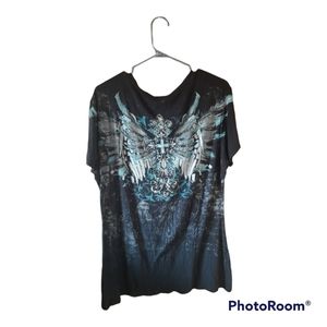 29" shoulder to hem and 23" armpit to armpit approximately. Size tag removed but fits like a 2X. Cotton blend.