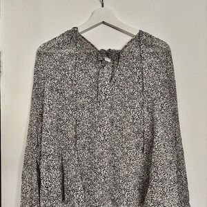 100% silk, very loose fit, tag says XS but will fit a person wearing S-L (I wear XS and it's way too big for me)