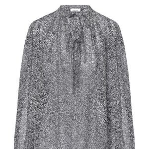 ANINE BING Abigail Tie Neck Silk Blouse In Black And White