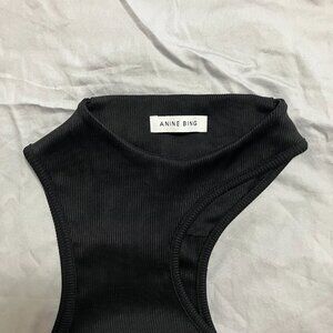 ANINE BING Lesly Cutout Ribbed Tank Top In Black