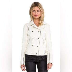 ANINE Bing Leather moto jacket “dirty” white jacket 100% washed lamb skin sz sm