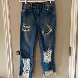 ANKEL LENGTH DISTRESSED BOYFRIEND JEANS FASHION NOVA | size: 7