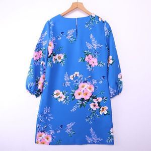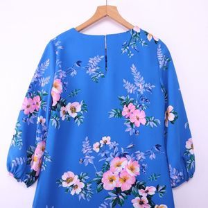 ANN TAYLOR Blue Floral Dress, Crew Neck, Sleeve with Elastic Hem, Non Stretchy