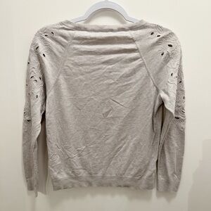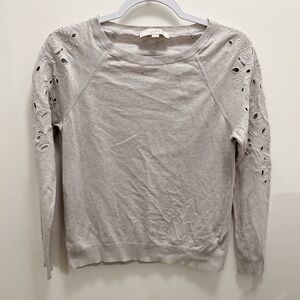 Ann TAYLOR LOFT | Grey Laser-Cut Floral Arm Boat Neck Long Sleeve Tee Size S