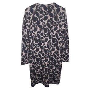 ANN TAYLOR LOFT Knit Dress With Floral Print & Long Sleeves Taupe/Beige Sz Large