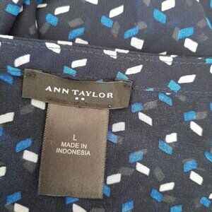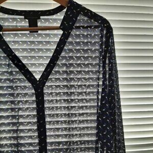 ANN TAYLOR Semi-Sheer Lightweight V-Neck Button Down Blouse Top Sz L