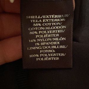 Features a pretty navy blue and white striped pattern, elasticized waist band, and a back zipper with eye and hook closure.