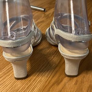 ANNA-TRUE SILVER TEXTURED METALLIC MID-HEEL STRAPPY DRESS SANDAL (Size 6M) NEW