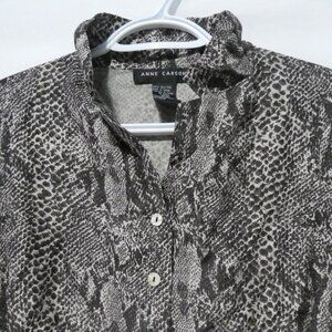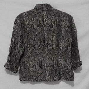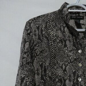 ANNE CARSON | medium | Silk Button-Up Snake Print Blouse | Rolled Cuffs