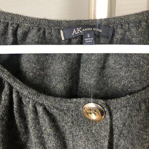 ANNE KLEIN 100% Cashmere Grey Button Down 3/4 Sleeve Sweater Sz S