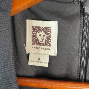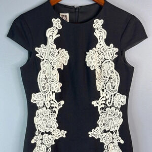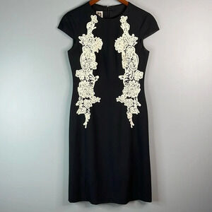 ANNE KLEIN Dainty Dress Black White Lace Appliqué Sheath Midi Cap Sleeves Size 4