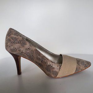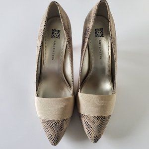 ANNE KLEIN Faux Snakeskin Shoes Stretch Band Brown Wood Stiletto Heel Women's 8