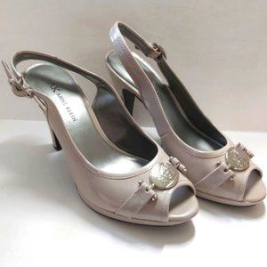 ANNE KLEIN Women's Iflex Peep Toe Slingback Heels Beige Size 7