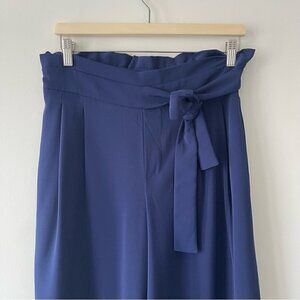 ANNE Klein Wide Leg Cropped Paperbag Tie Waist Navy Pants size small