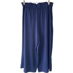 Anne Klein Wide Leg Cropped Paperbag Tie Waist Navy Pants size small