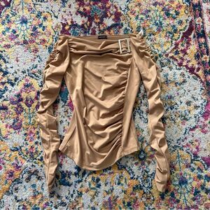 ANNEX Deadstock gold rushed off shoulder 90s spandex top