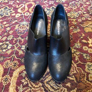 *ANTELOPE* Genuine Leather 903 Hi Banded Block Heel Black Shoes - Size 6.5