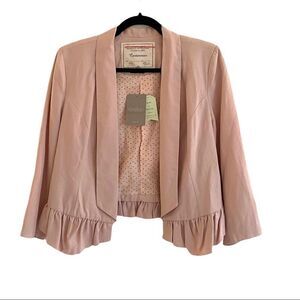 ANTHROPOLIGIE Cartonnier Dusty Rose Pink Open Front Blazer Jacket Ruffle
