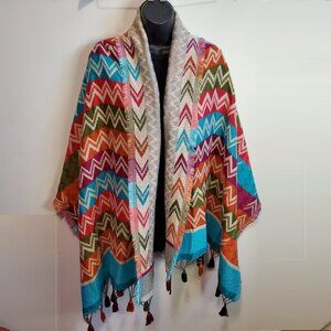 AHUJASONS by ANTHROPOLOGIE Chevron Scarf Wrap Shawl Cotton Wool Tassels 78" x 28.5"