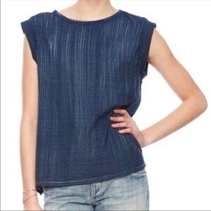 Cloth & Stone Anthropologie blue stonewashed open crossback short sleeve top. The split seam tulip back is super sexy! Sleeves have a wide opening, are capped and cuffed hems. The open back crisscross is completely free to hang and can open up all the way to the top. Super comfy, flowy and airy to wear. See up close pic of fabric lines that is made to look like denim. In excellent used condition with no flaws. Please see photos for measurements and details. Women's size SMALL.