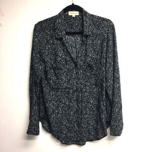 ANTHROPOLOGIE Cloth & Stone Button Front Blouse Black White Print M