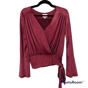 ANTHROPOLOGIE Deletta Sirpo Rust Red Wrap Pullover Bell Sleeve Size XS