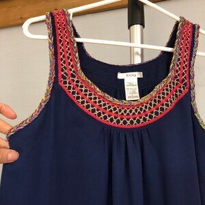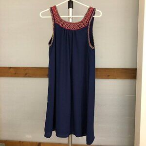 ANTHROPOLOGIE ESLEY Blue Sleeveless Colourful Knit Neckline A-Line Dress Sz S