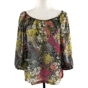 ANTHROPOLOGIE Edme & Esyllte 100% Silk Blouse Top Size XS Semi Sheer Floral
