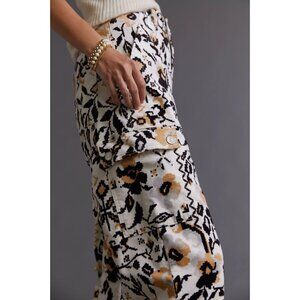 ANTHROPOLOGIE Floral Printed Cotton Corduroy Tapered Utility Pants, Size 2