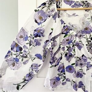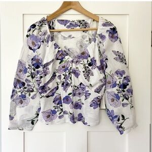 ANTHROPOLOGIE Floral V Neck ruched knit top size M