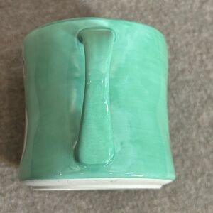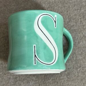 ANTHROPOLOGIE Green Monogram 'S' Ceramic Mug. Stylish green ceramic mug with a bold 'S' monogram. Perfect for coffee or tea lovers.