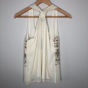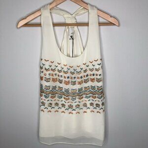 Anthropologie Greylin Ivory Beaded Sheer Racerback Tank Top/Cami Size Small