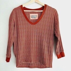 ANTHROPOLOGIE Hannah Striped V-Neck 3/4 Sleeve Top Sz XS