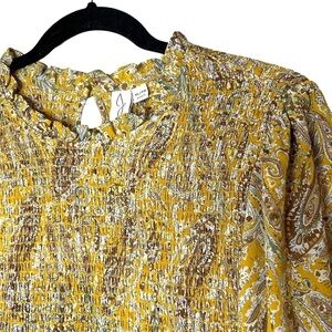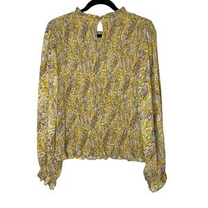 ANTHROPOLOGIE Joie Yellow Paisley Smocked Long Sleeve Blouse