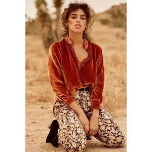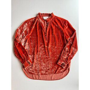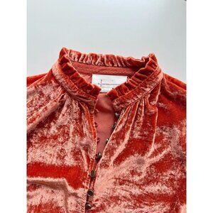 ANTHROPOLOGIE Kristianne Orange Velvet High Neck Ruffle Trim Blouse, Size XS