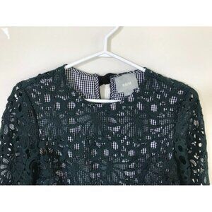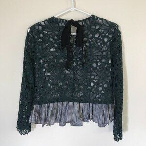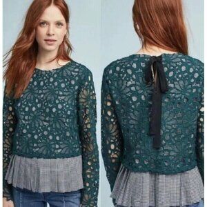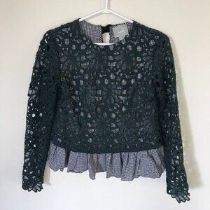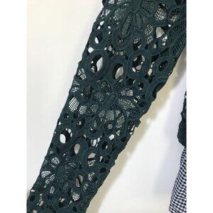 ANTHROPOLOGIE MAEVE Gabriella Gingham Peplum and Green Lace Top Size XS