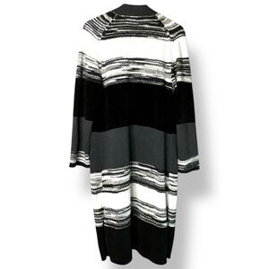 In very good pre owned condition. Knit with Chenile Stripes. Long sleeves slightly flared. Open front. So very soft and cozy. Blended fabric with wool and cashmere. Front patch pockets. Photos are important so please check all for condition, detail and measurements.