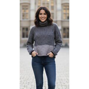 ANTHROPOLOGIE MOTH Fair Isle Wool Turtleneck Sweater in Blue White