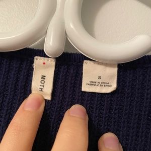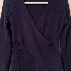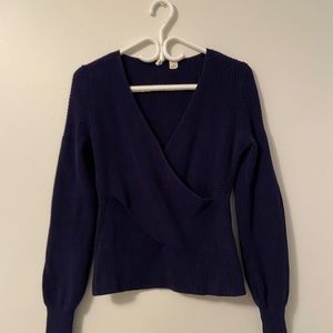 ANTHROPOLOGIE MOTH LIZA NAVY BLUE COTTON V-NECK WRAP SWEATER COASTAL GRANDMA