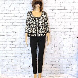 ANTHROPOLOGIE - Maeve Boho black floral blouse with cutout detailing