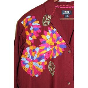 ANTHROPOLOGIE Maeve Embroidered Button-Up Cotton Shirt Wine, Size 6
