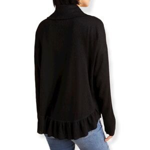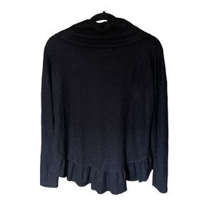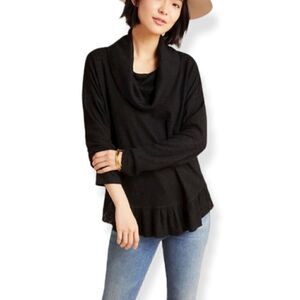 ANTHROPOLOGIE Mauve Black Peplum Ruffle Addie Black Long Sleeve Sweater SZ XS