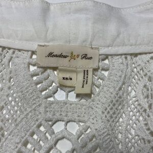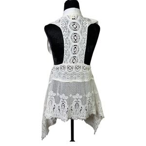ANTHROPOLOGIE Meadow Rue 100% Cotton White Lace Open Front Vest US Sz XS