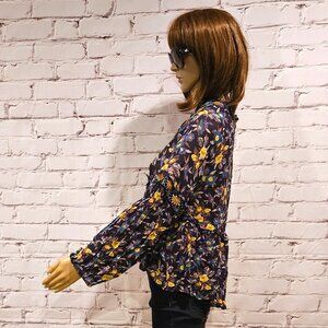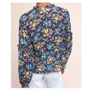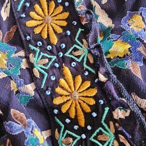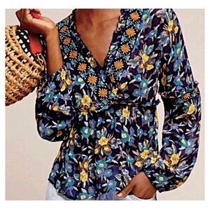 ANTHROPOLOGIE - Meadow Rue Strasser Boho navy blue floral embroidered blouse